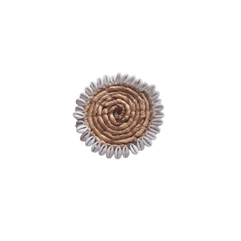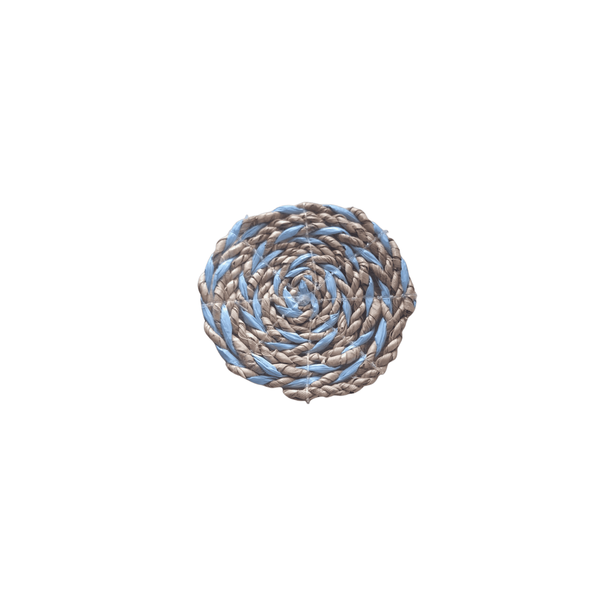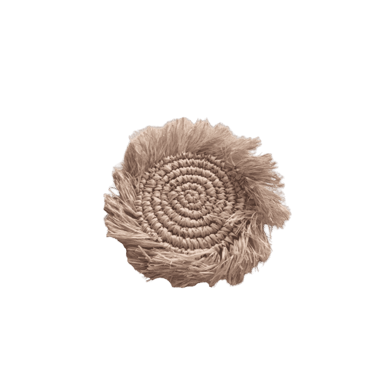 A handcrafted jute coaster with a textured woven surface, designed to protect surfaces while adding a natural decorative accent.