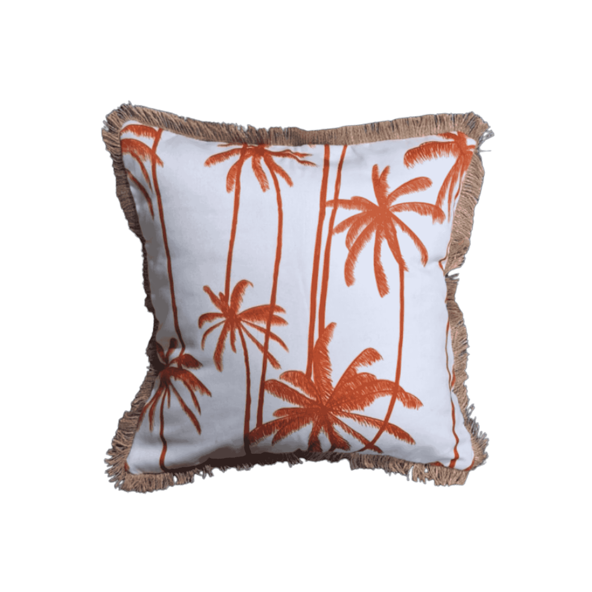 A palm-patterned cushion cover that adds a fresh and effortless tropical touch to any interior.