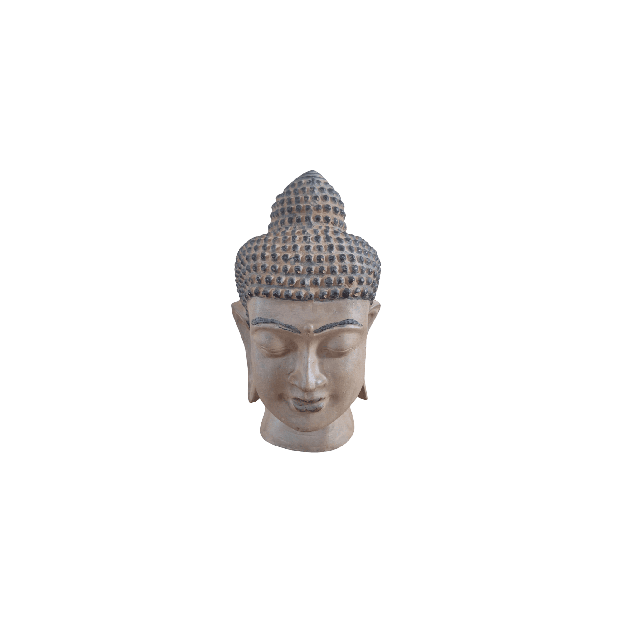 A hand-carved stone Buddha head statue radiating serenity and spiritual calm, perfect for creating a peaceful corner in your home or garden.