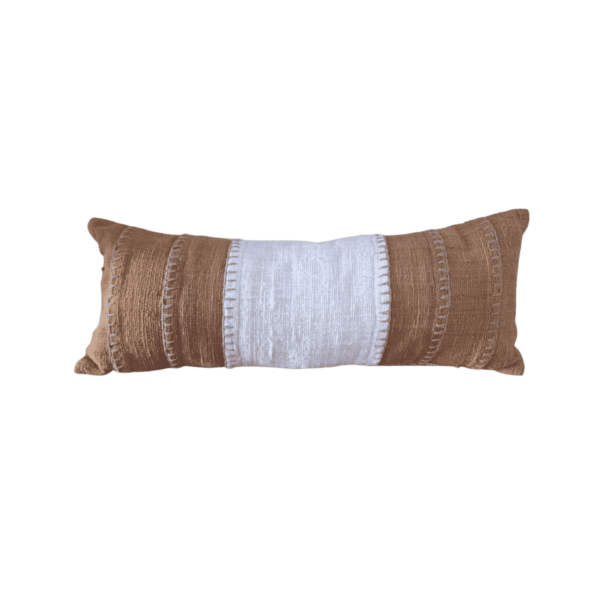 Its elongated lumbar shape offers comfortable support while adding artisanal texture to sofas, beds, or seating areas. The blend of textile techniques highlights skilled craftsmanship, making this cushion cover a refined statement piece for interiors inspired by natural, handmade aesthetics.