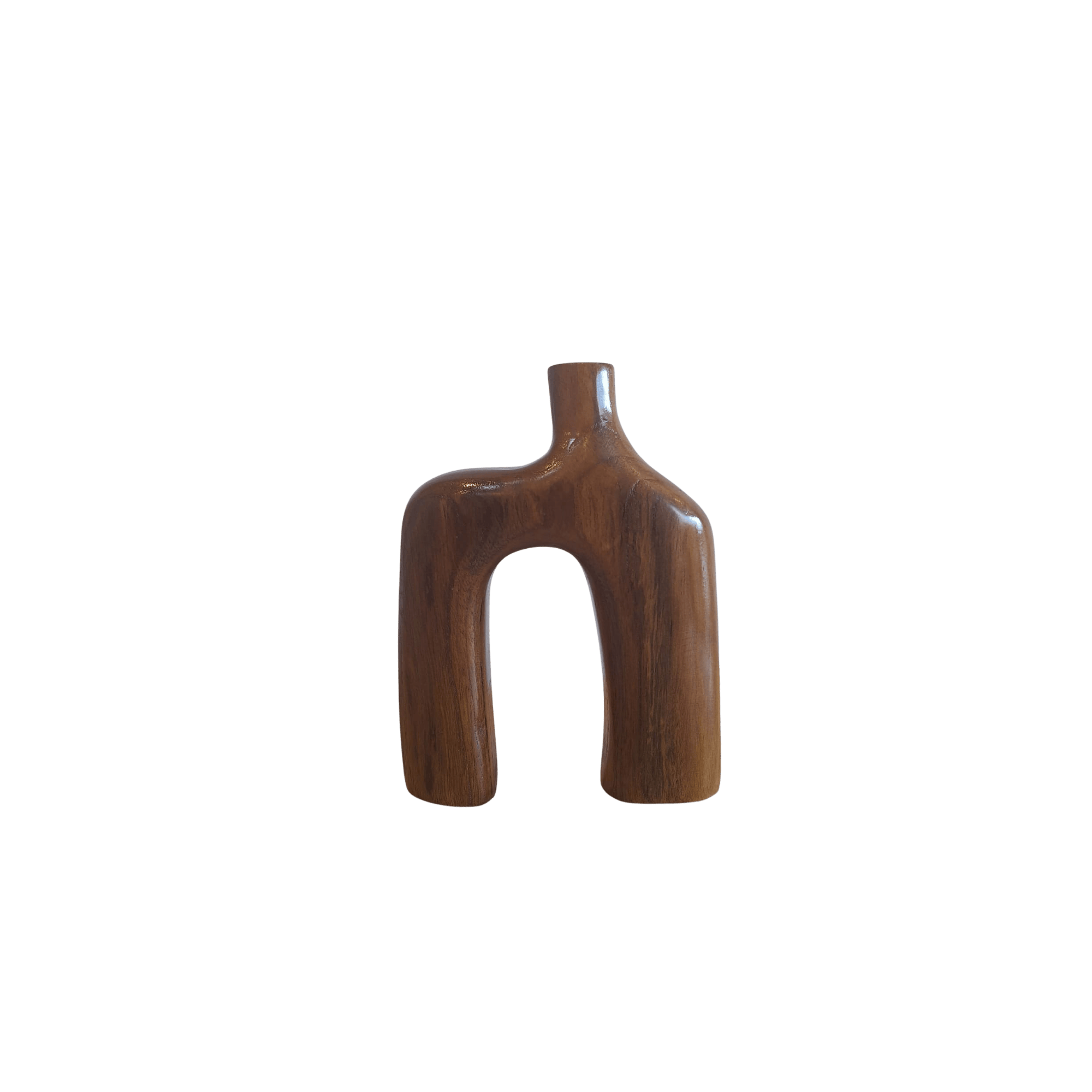 A handcrafted wooden decorative accent with an organic form and natural character.