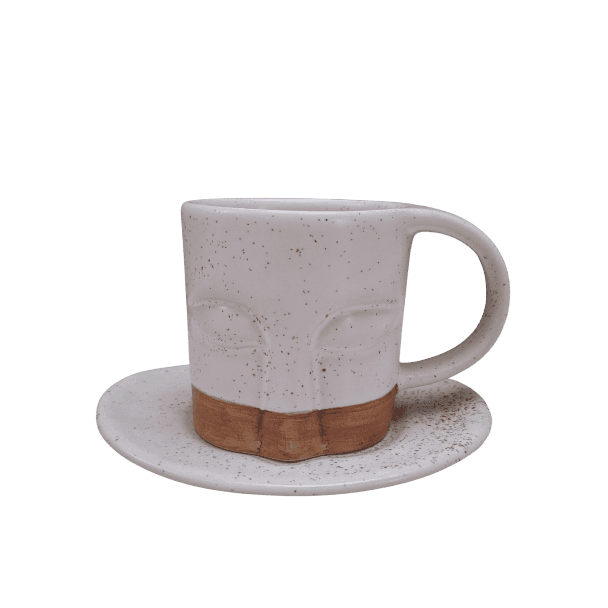 A charming teacup and plate set featuring a sculpted face design that adds personality and artful elegance to your tea time.