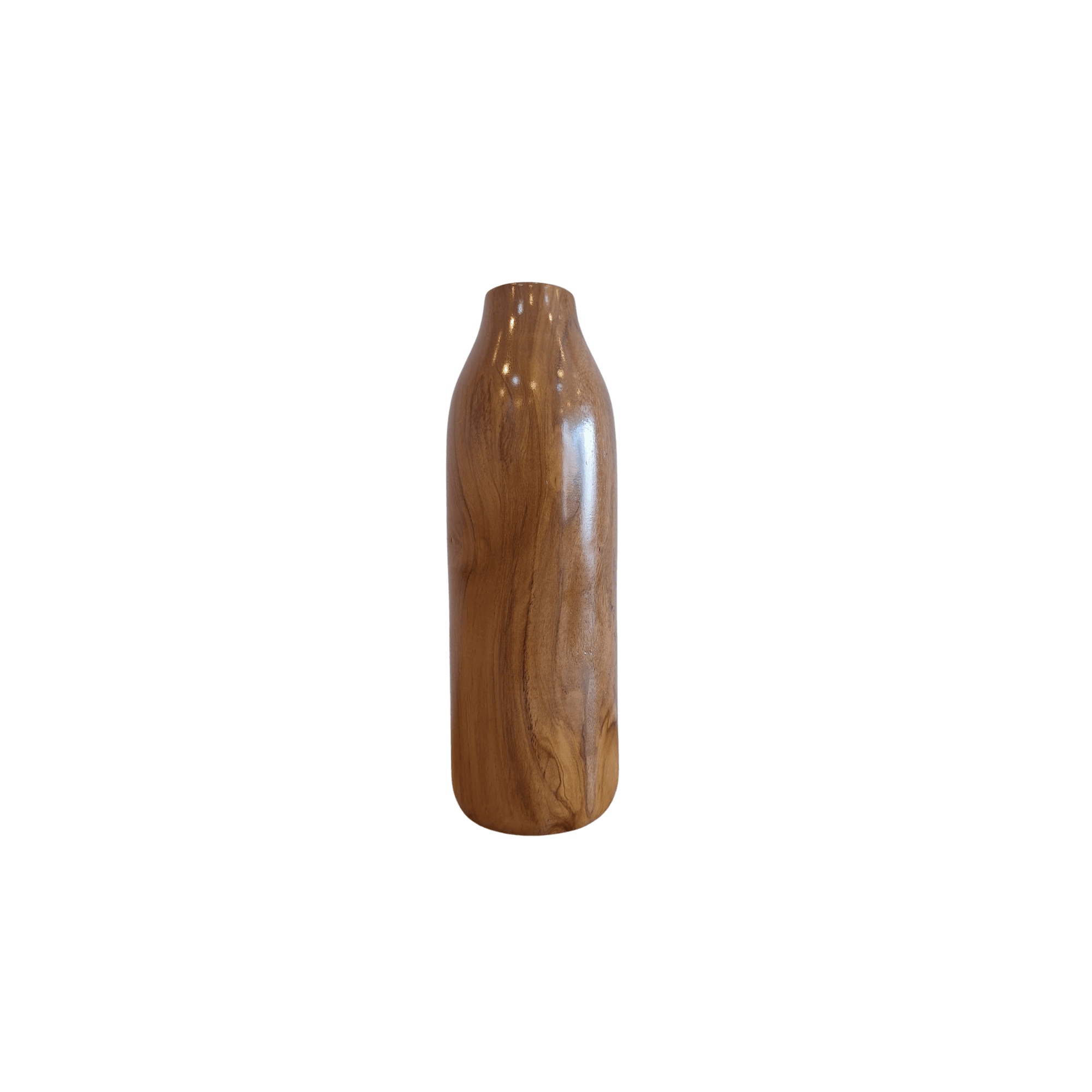 The Titipya Wooden Vase features a tall, refined silhouette with a smooth, hand-finished surface that highlights the natural character of the wood. Its gently contoured form creates a balanced and elegant profile, making it a timeless decorative accent.